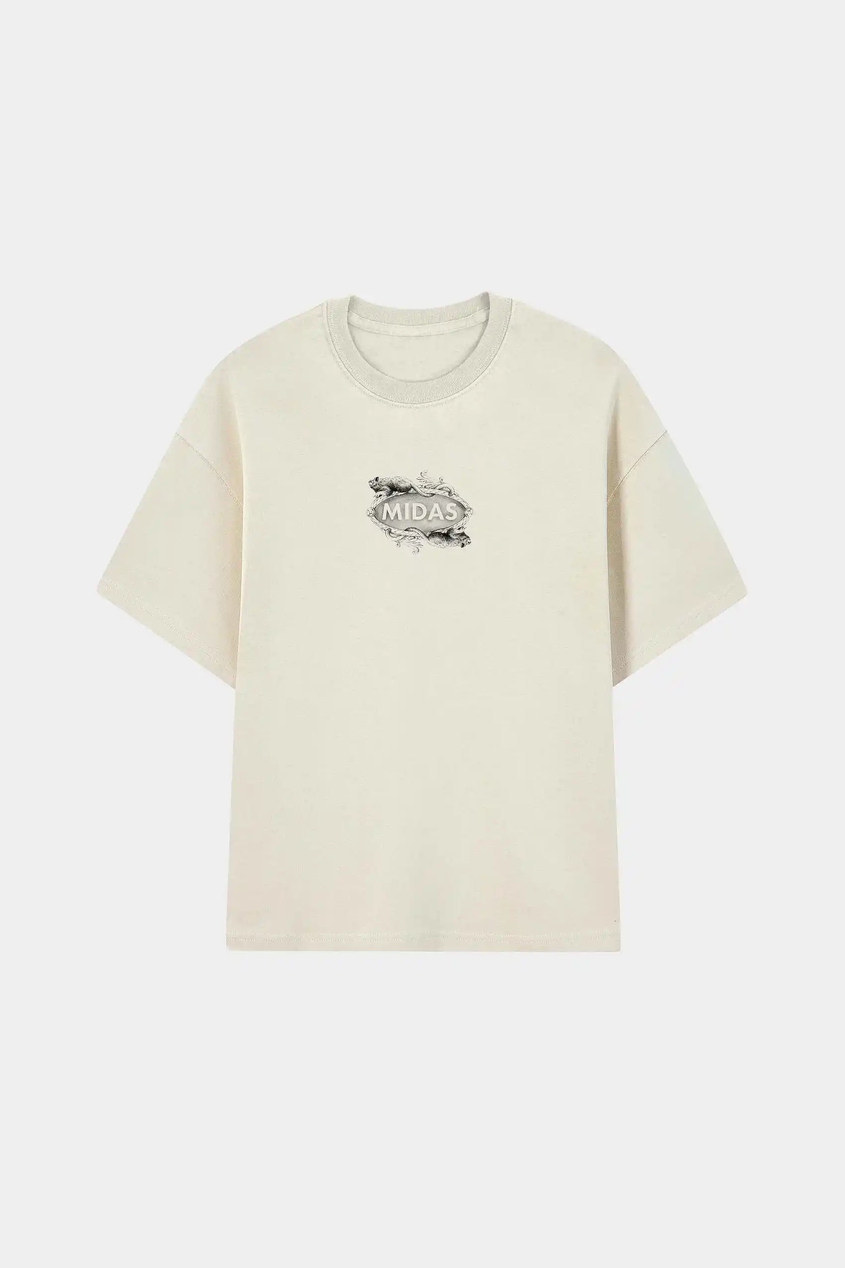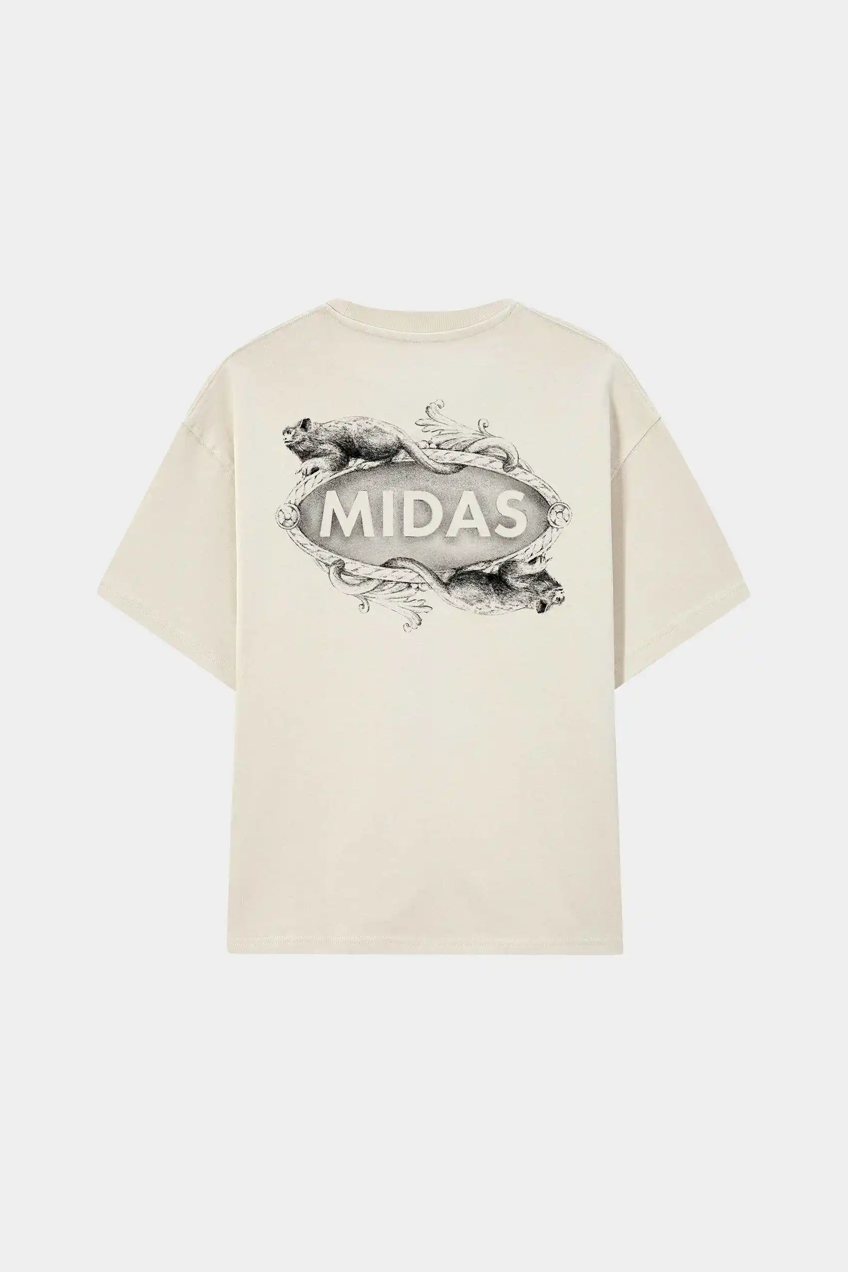 A estampa pequena centralizada na frente e a composição artística nas costas unem estética e narrativa, traduzindo o olhar da Midas Touch sobre a arte como obsessão e identidade.