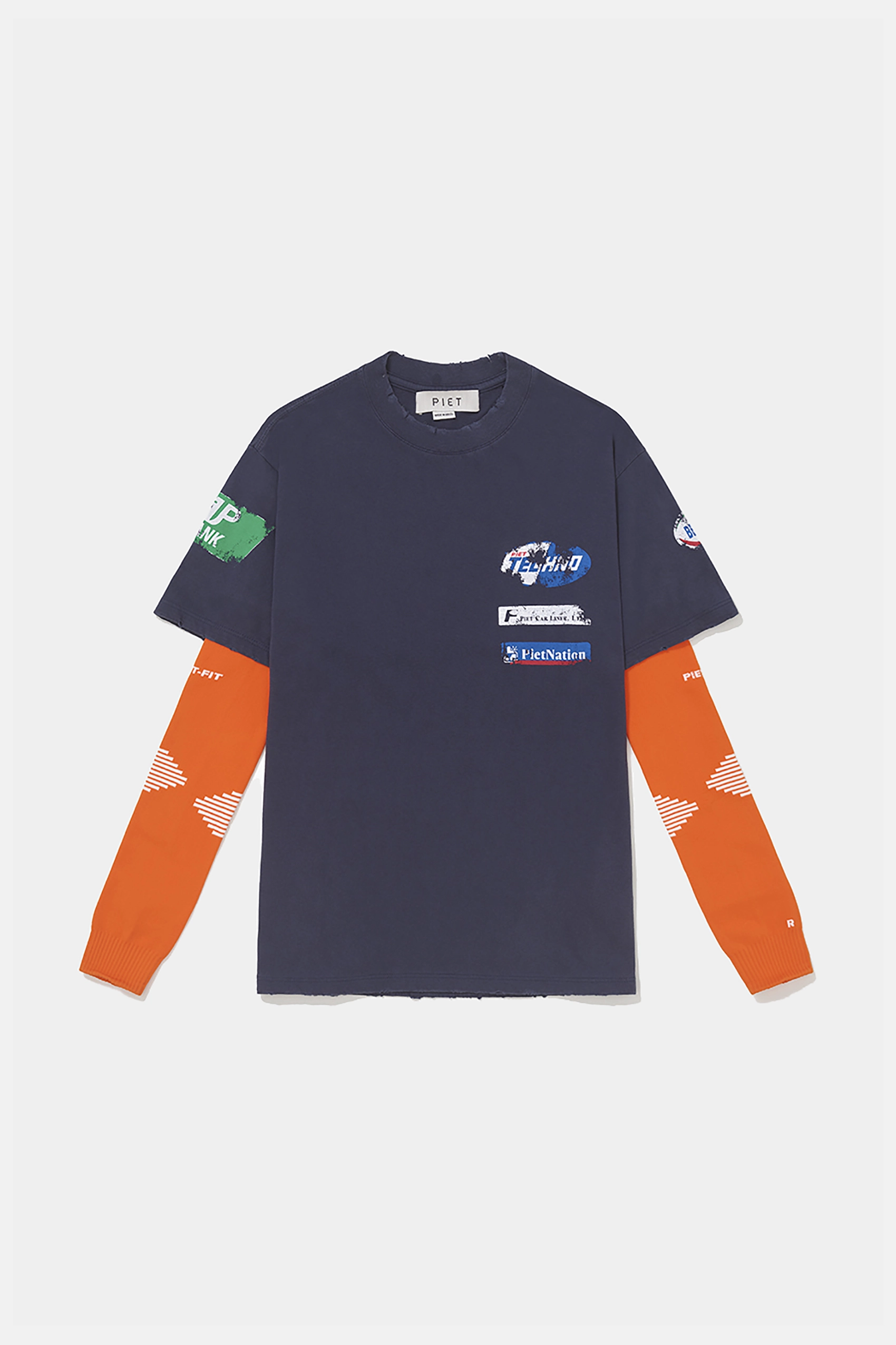 Camiseta PIET F.C Knitted Sleeve (Navy/Orange)