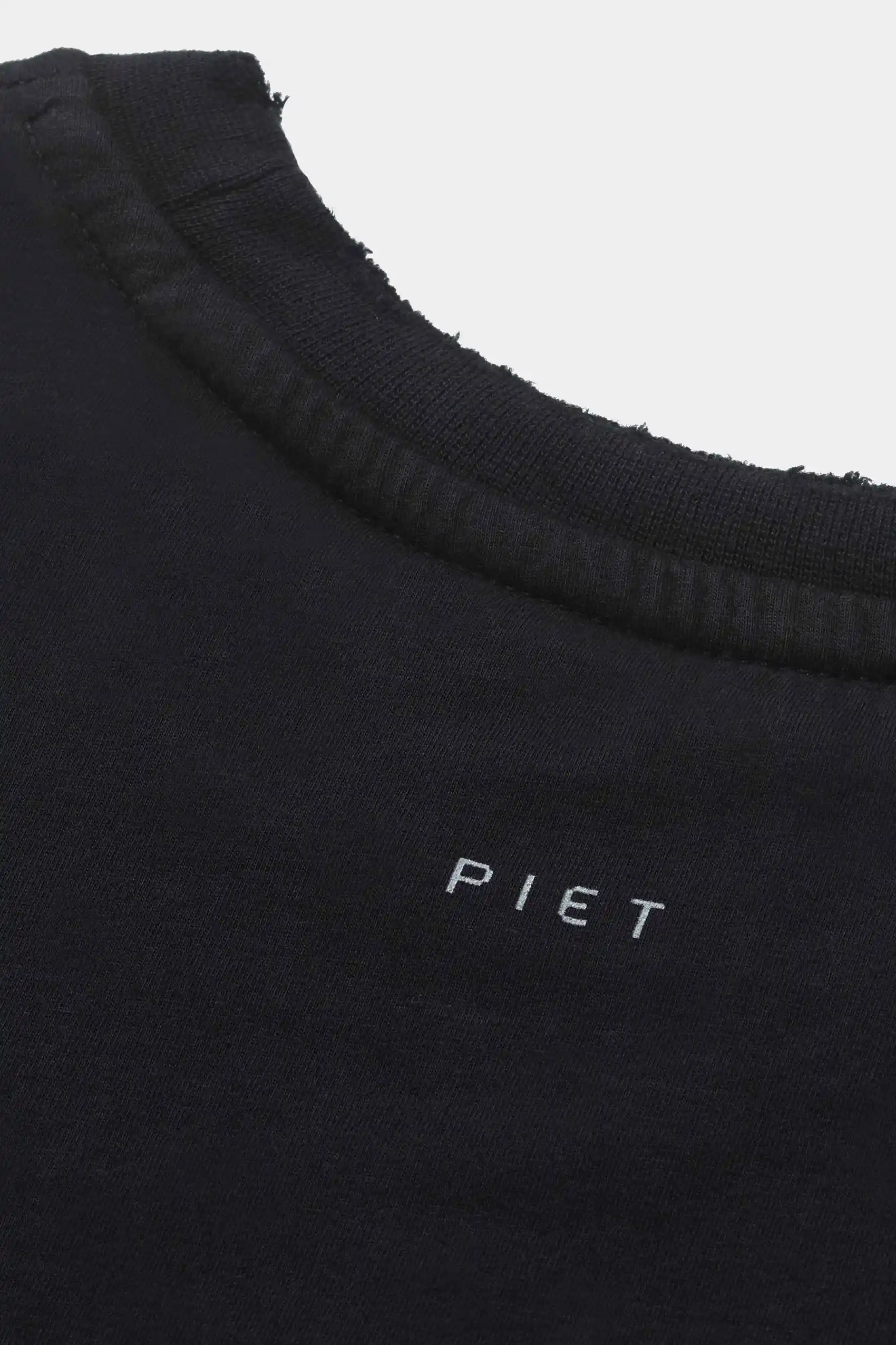 Produzida em malha 100% algodão 180 GSM, pré-encolhida, a Layered entrega conforto e estrutura. A modelagem relaxed, com ombros caídos e gola de 2,5 cm, reforça a silhueta contemporânea da PIET.