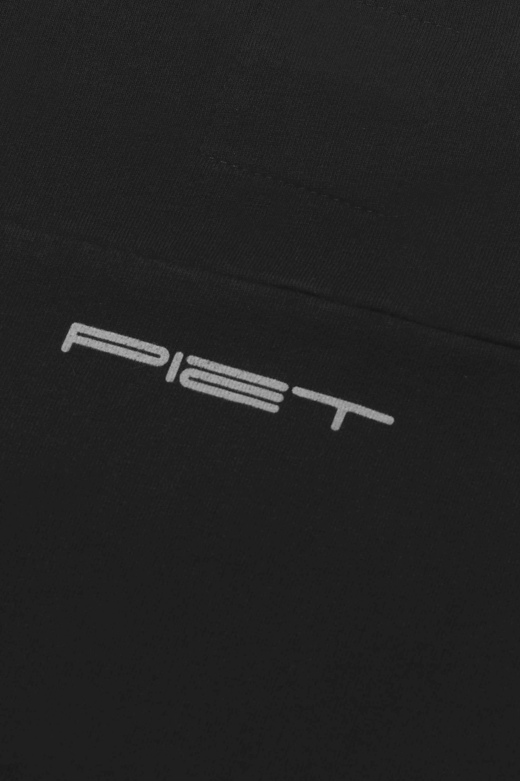 A estética se completa com a elipse estampada na parte frontal, o logo PIET nas costas e novas elipses aplicadas em ambas as mangas — criando uma composição equilibrada entre minimalismo gráfico e funcionalidade.